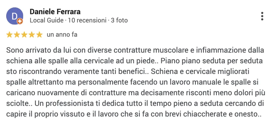 Si occupa del trattamento dei principali disturbi e patologie muscolo-scheletriche, come cervicalgia, lombalgia, tendiniti e fasciti plantari.